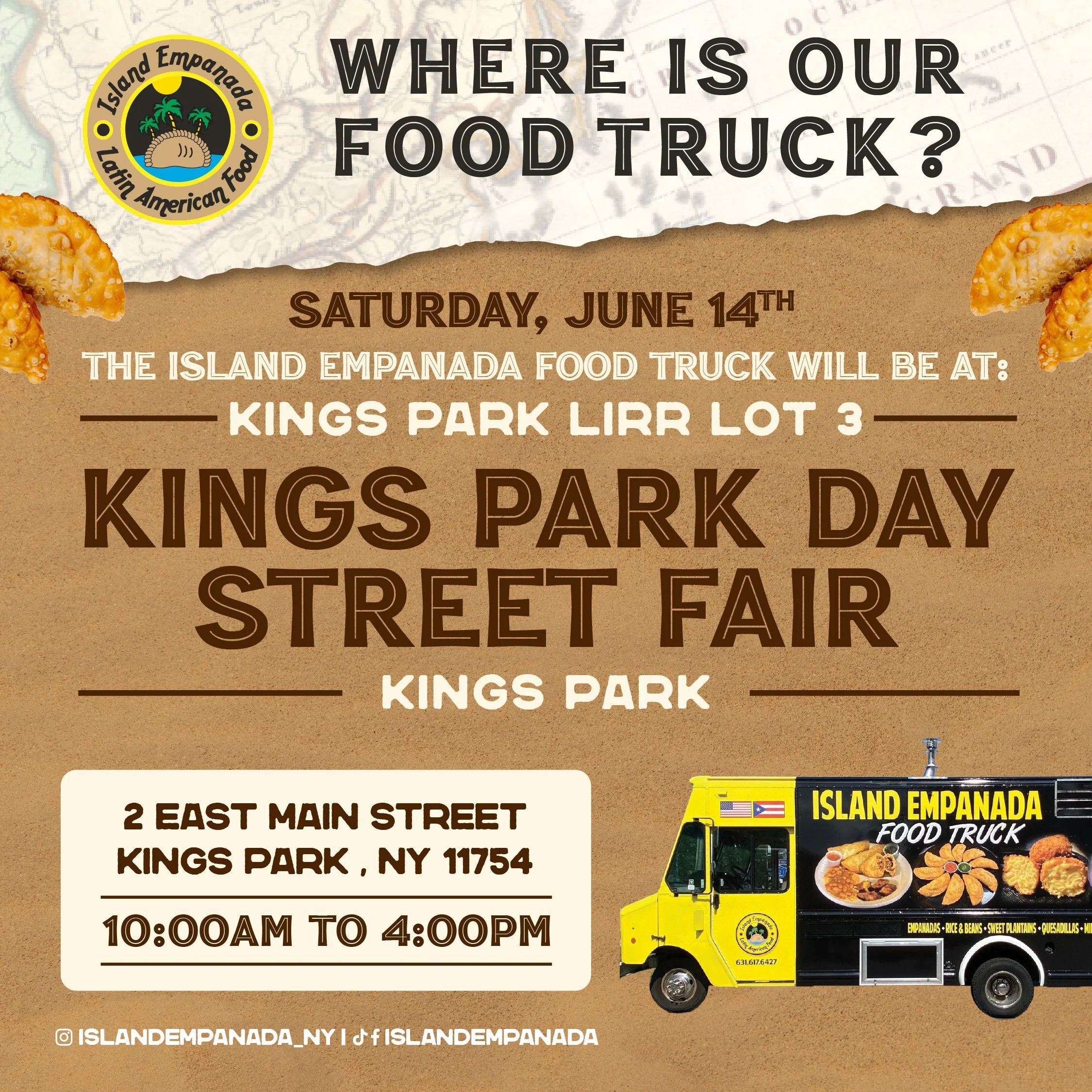 Beep Beep! The Island Empanada Food Truck will be at Kings Park Day Street Fair June 14th from 10am- 4pm!